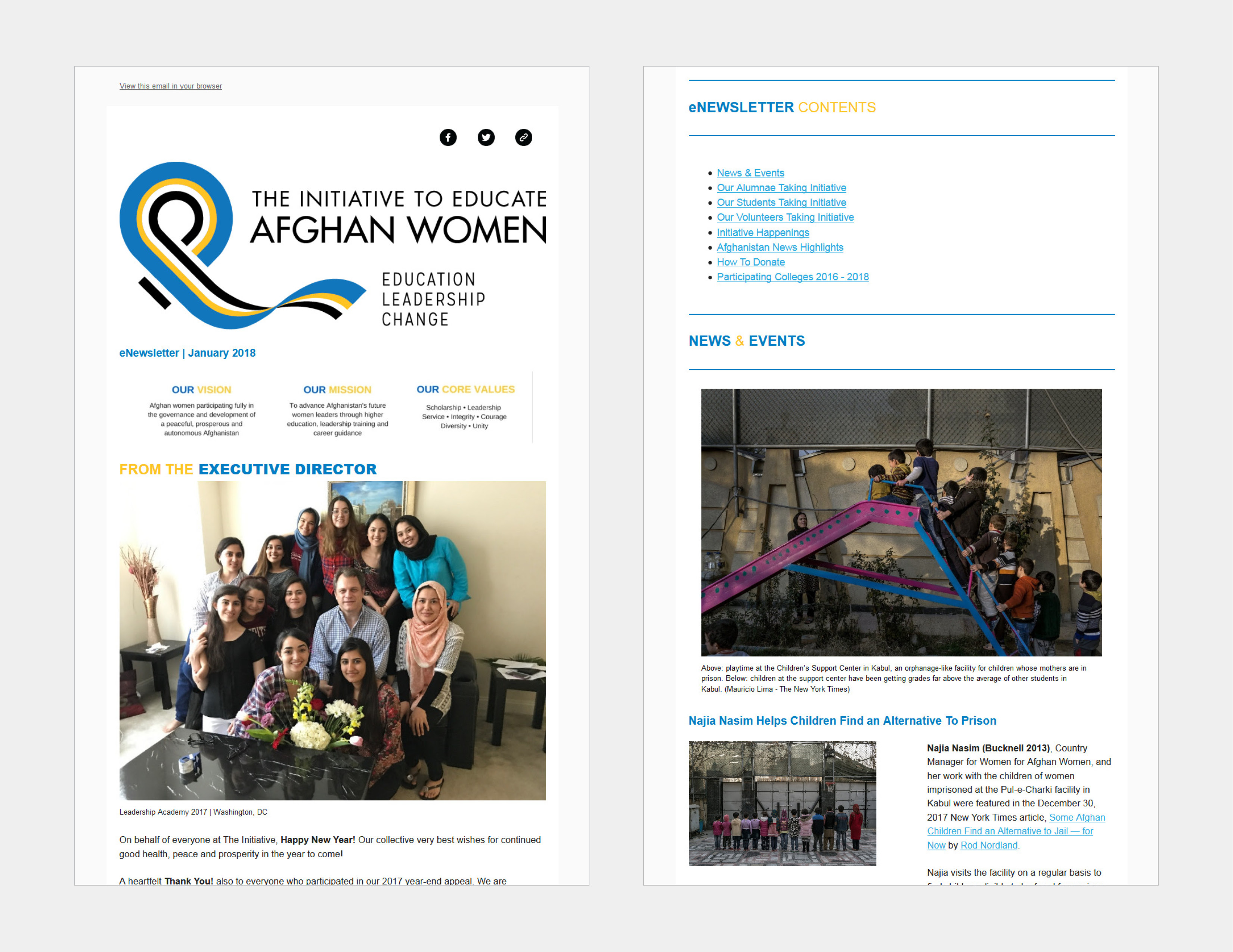 Designed and created Website (ieaw.org), Gate-fold Newsletter Brochure & eNewsletter Template.