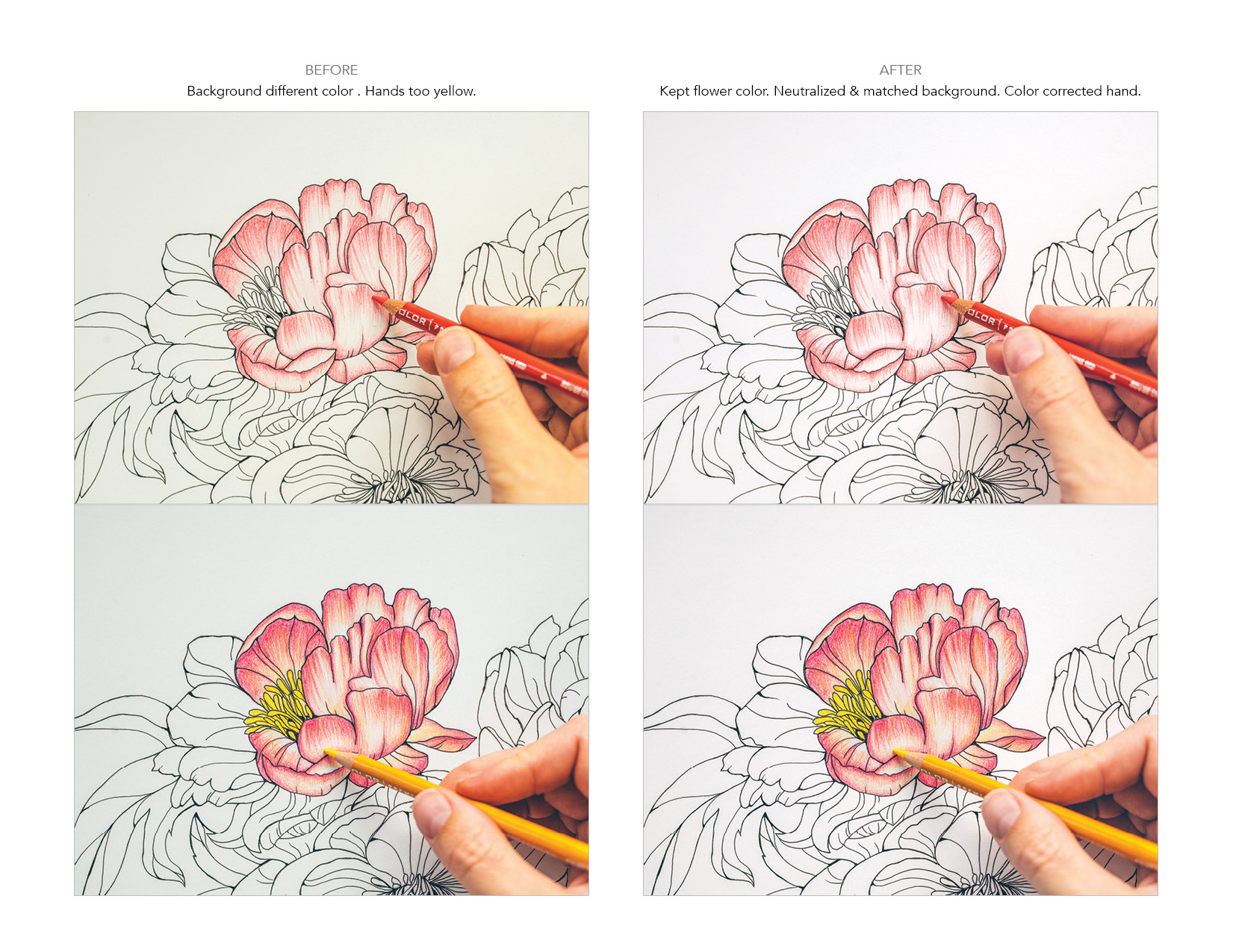What I did: Photo Editing, Color Correction, Neutralize Background, Drop Background, Background Matching, Photo Extension, Smooth Skin